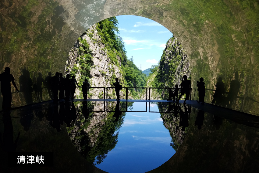 【清津峽】是由綿延100多公尺的懸崖峭壁構成的峽谷,清津川從其中川流而過,崎嶇不平的岩壁與翠綠的溪流形成美麗的對比,因其迷人的景觀被列為日本三大峽谷之一。另外設有清津峽溪谷隧道,沿途設置多個觀景平台,其中「鏡面觀景台」利用玻璃與水面反射,將峽谷景色映照如畫,非常適合拍照留念。