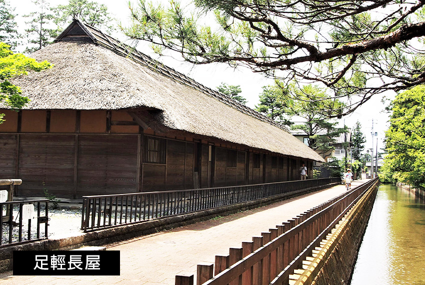 【足輕長屋】是江戶時代足輕所建造的集合住宅,屬於武士階級中最基層的步兵,負責軍隊作戰及城下町日常勤務,生活簡樸,因此長屋的設計也非常樸素。建築多為木造狹長型,低矮且間數小,數戶相連而成,每戶空間有限,僅設有土間、火爐和起居區,兼作睡眠與料理使用,反映足輕家庭節制的生活型態。